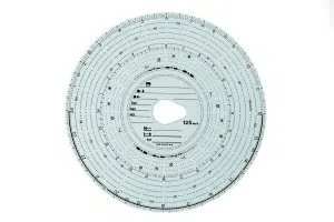 Dabei steht eine Umdrehung der runden Papierscheibe im Gerät üblicherweise für einen Zeitraum von 24 Stunden. Je nachdem welche Geschwindigkeit gefahren wird, zeichnet das Gerät die Informationen näher zur Mitte oder mehr zum äußeren Rand auf.