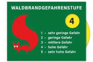 Informationen über die aktuellen Waldbrandstufen erhalten Sie beispielsweise bei Ihrer örtlichen Feuerwehr, die diese etwa über Schilder kommuniziert, oder auf der Webseite des Deutschen Wetterdienstes (DWD). Die Waldbrandsaison reicht etwa von Februar/März bis circa September/Oktober. In dieser Zeit gibt der DWD die Gefahrenstufen täglich am Morgen heraus sowie die Prognose für die nächsten vier Tage.